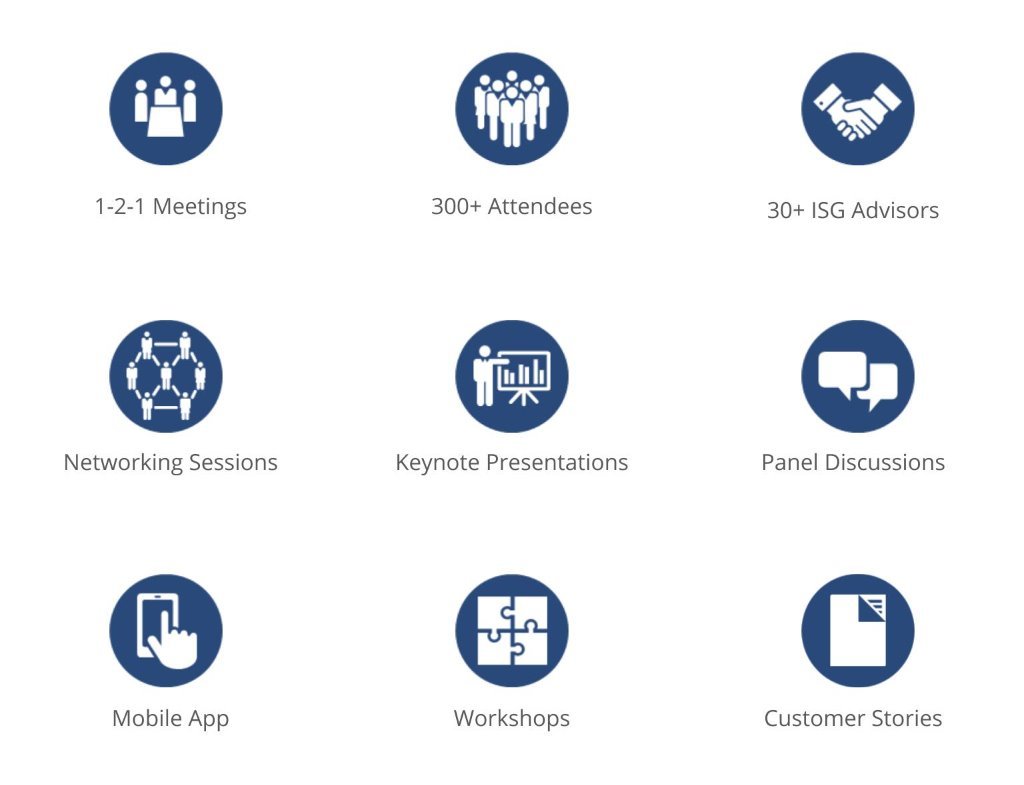 Join one of the few programs geared towards service and technology providers that addresses your greatest concerns. Top ISG thought leaders and guest speakers will explore how enterprises are investing in new digital technologies today and preparing for the technologies and services they’ll be buying tomorrow. This year's themes will include: • Partnering for Success • Sales and Marketing Effectiveness • Market Trends and Insights • Return on Investment • Blockchain and Sourcing • Automation and the User/Customer Experience